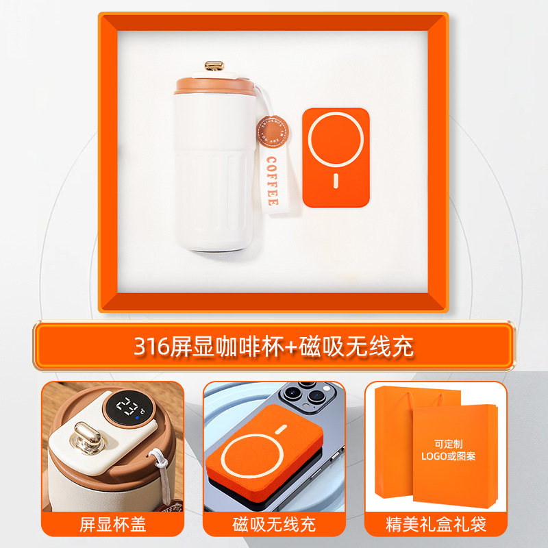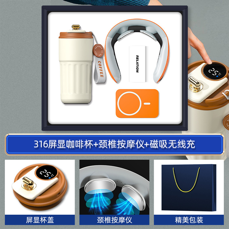 orange-316 digital coffee cup neck massager magnetic power bank three-piece set