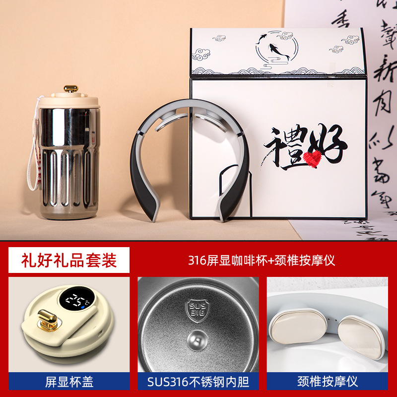 black-316 digital coffee cup neck massager magnetic power bank three-piece set