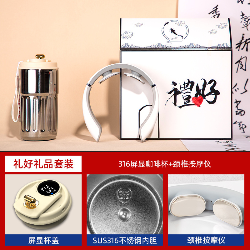 white-316 digital coffee cup neck massager two-piece set