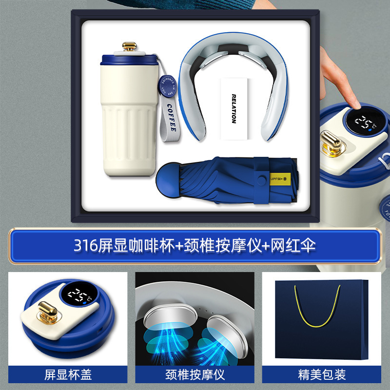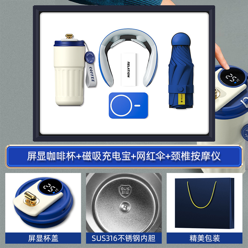 blue-316 digital coffee cup neck massager internet sensation umbrella magnetic power bank four-piece set