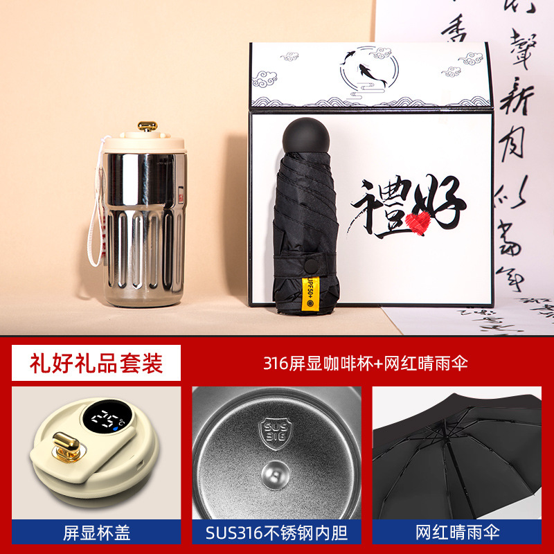 black-316 digital coffee cup neck massager internet sensation umbrella magnetic power bank four-piece set