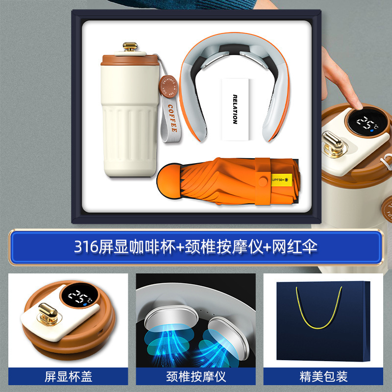 orange-316 digital coffee cup neck massager internet sensation umbrella three-piece set