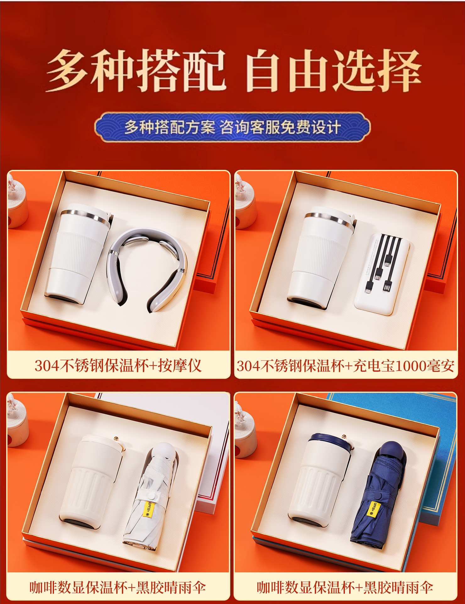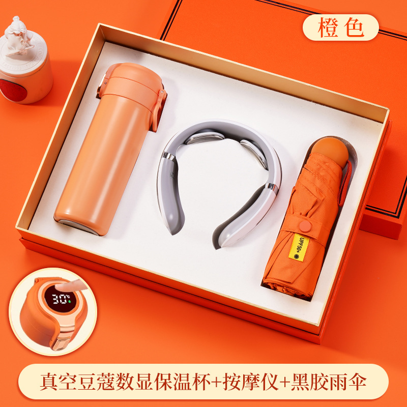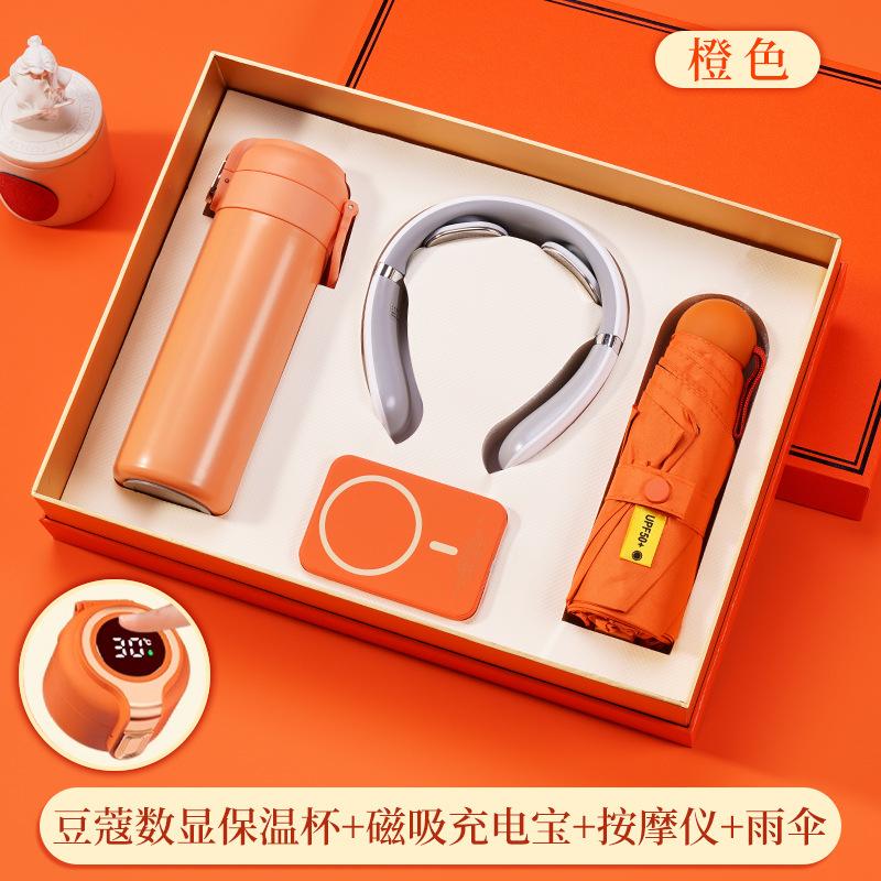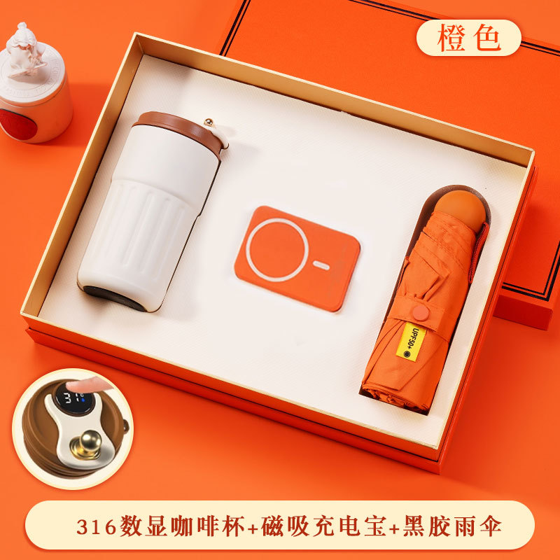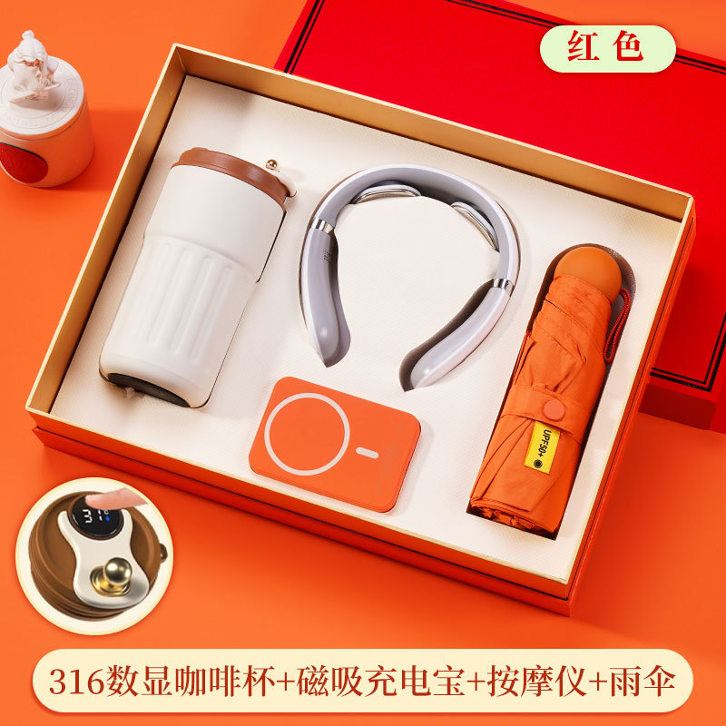 316 digital coffee cup + magnetic suction power bank + massage instrument + umbrella + orange gift box