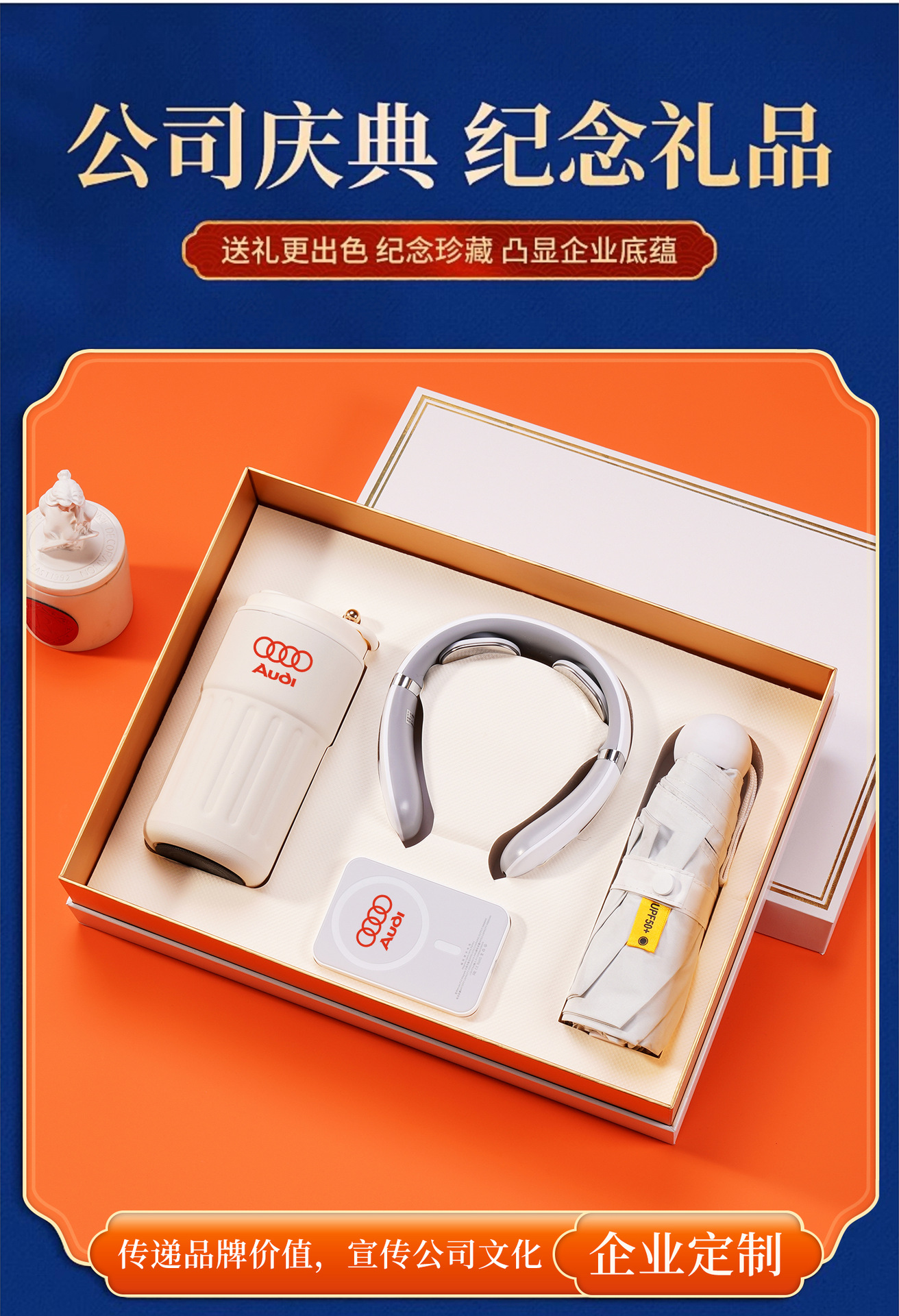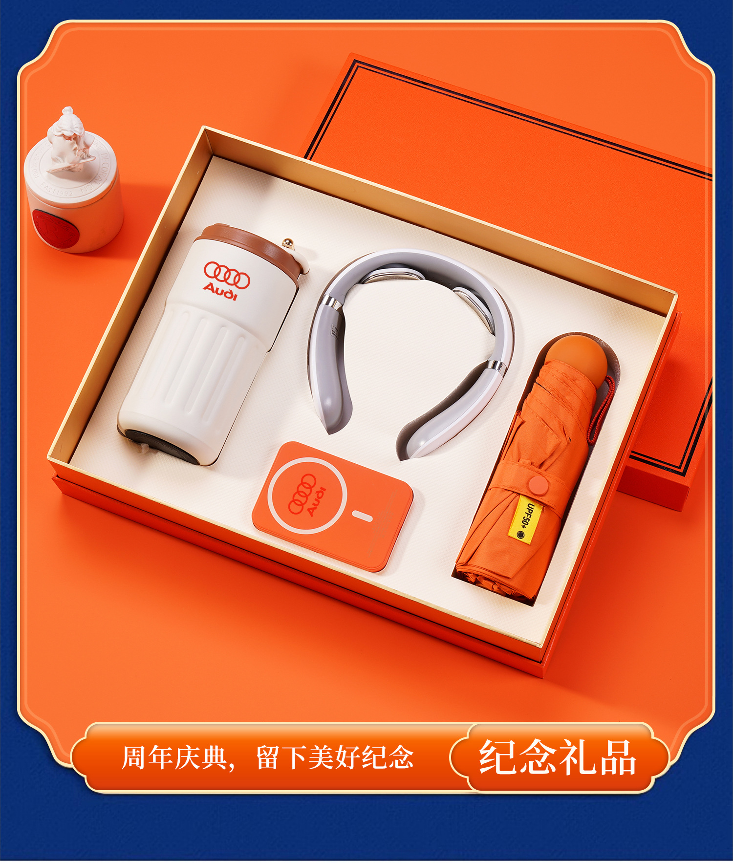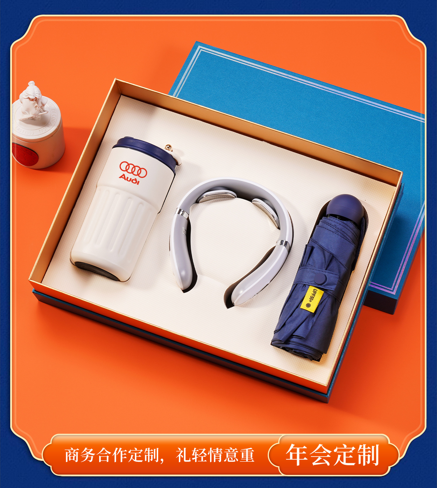 316 digital coffee cup + magnetic suction power bank + massage instrument + umbrella + orange gift box