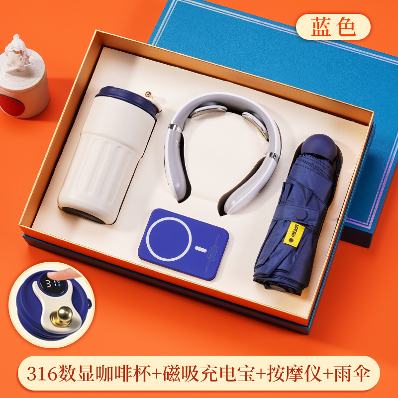 316 digital coffee cup + magnetic suction power bank + massage instrument + umbrella + blue gift box