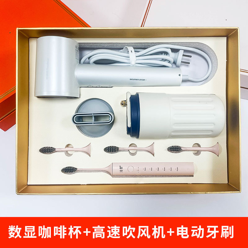 digital coffee cup + high-speed hair dryer + electric toothbrush