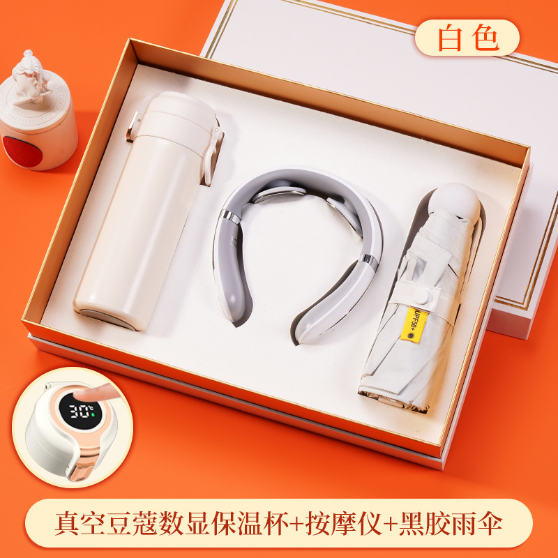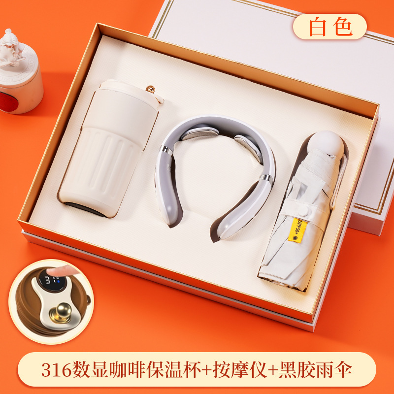 316 digital coffee thermos cup + massage instrument + vinyl umbrella + white gift box