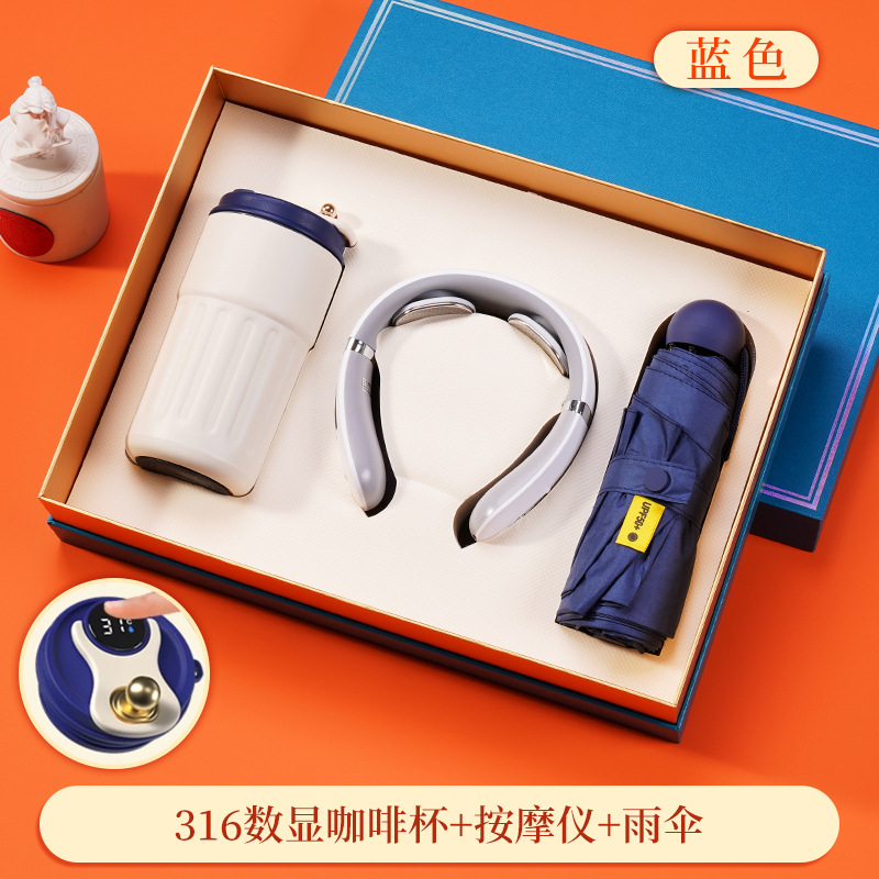 316 digital coffee cup + massage instrument + umbrella + blue gift box
