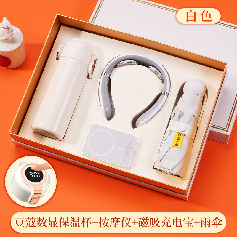 316 digital coffee cup + massage instrument + magnetic power bank + umbrella + white gift box