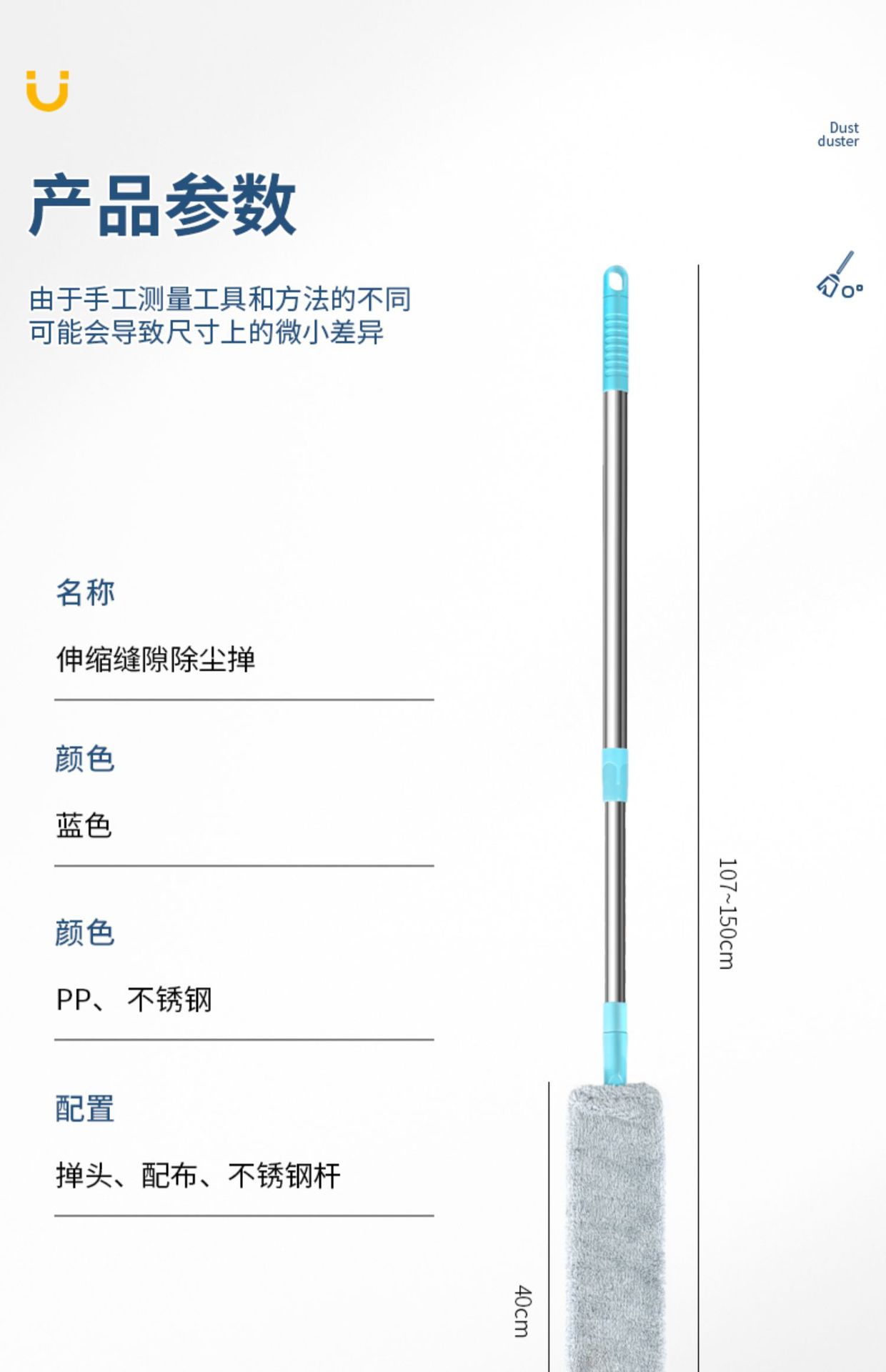 [gap cleaning] extended telescoping model 1.5 m comes with 1 piece of cloth