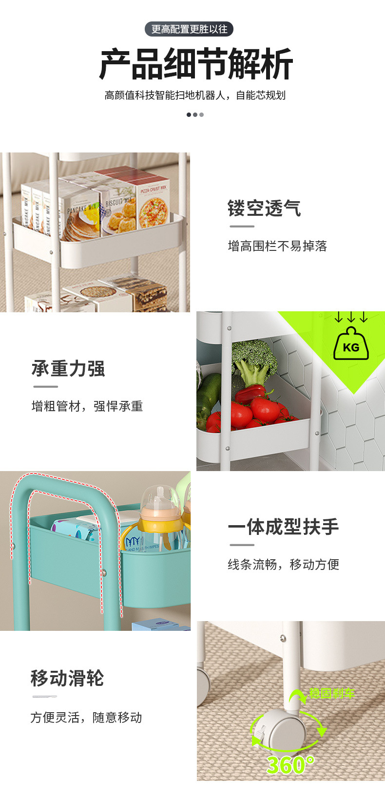 three-layer upgraded matcha green storage rack [universal wheel]]