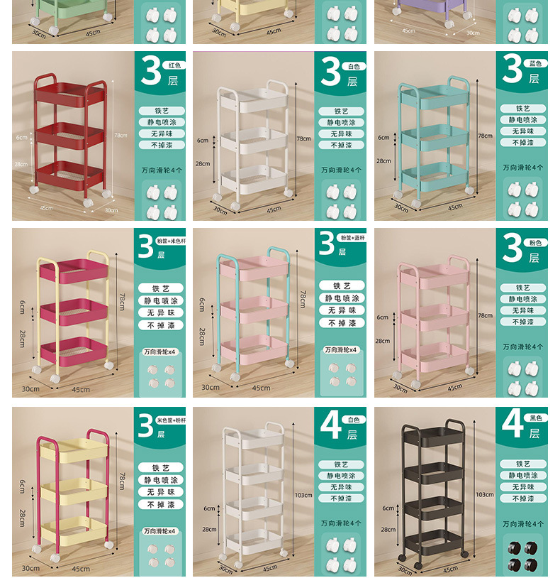 four-layer upgraded girl pink storage rack [universal wheel]]