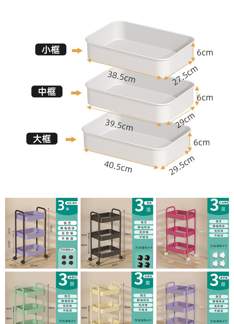 three-layer upgrade purple basket + black rod [universal wheel]]