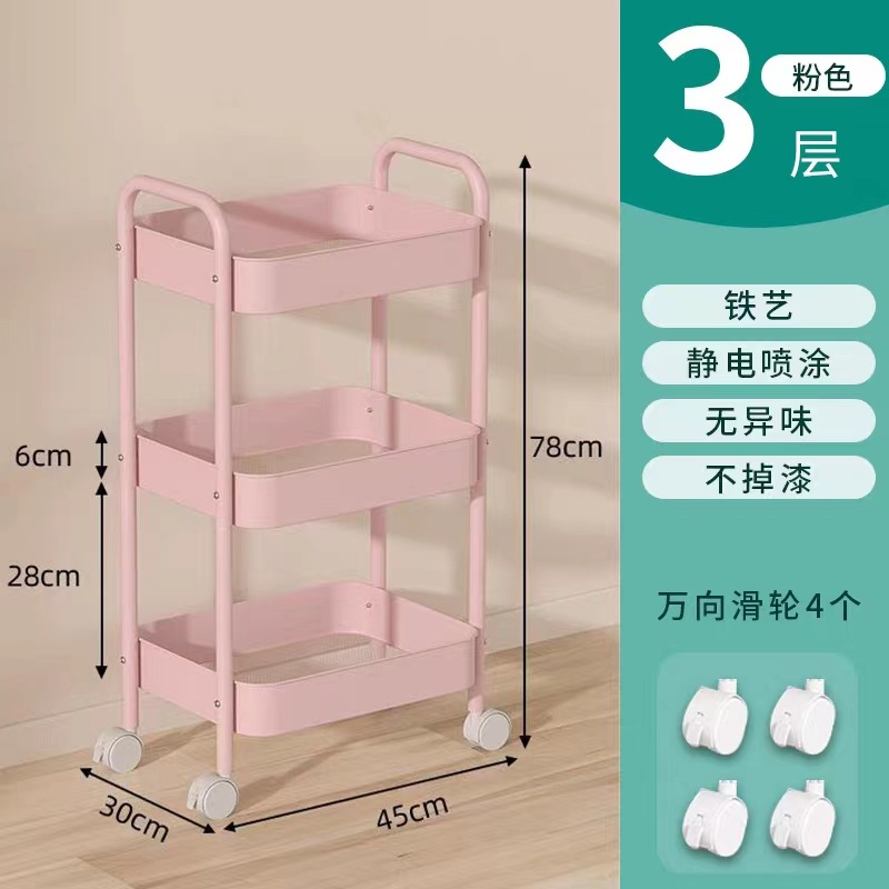 three-layer upgraded girl pink storage rack [universal wheel]]