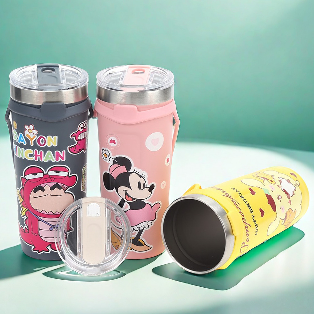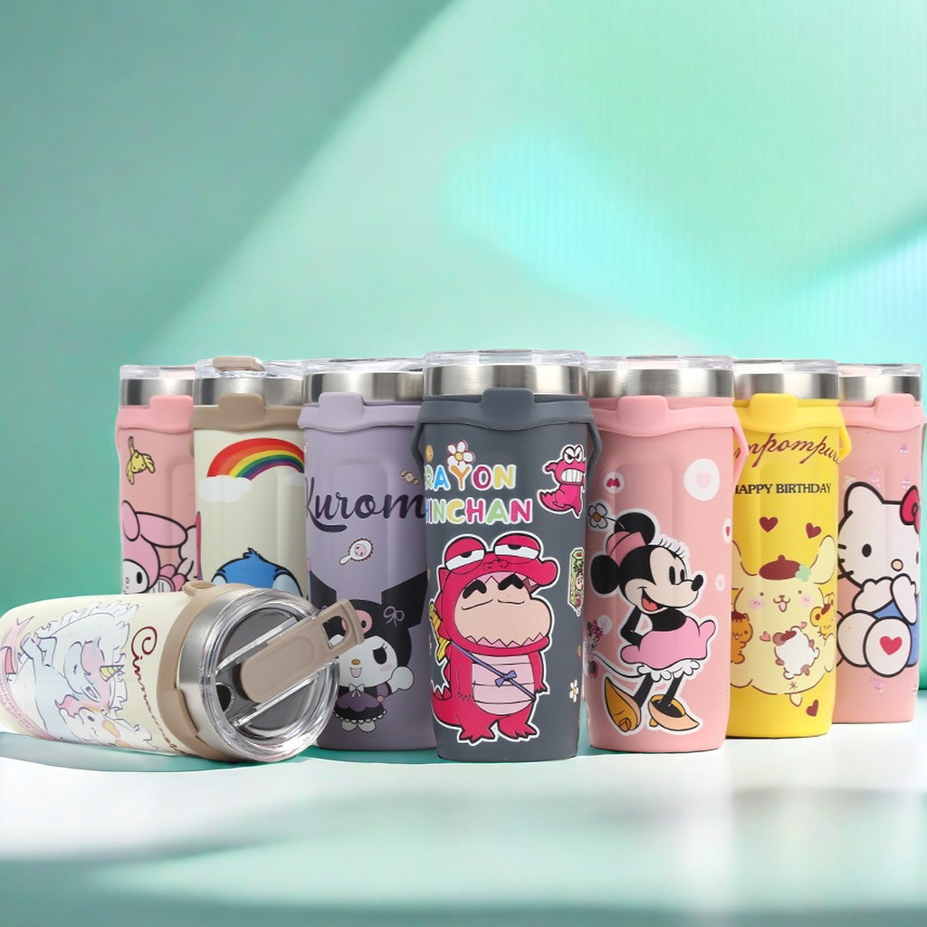 cross-border 304 stainless steel sanrio cute cartoon straw portable vehicle-borne cup large ice cup vacuum thermos cup