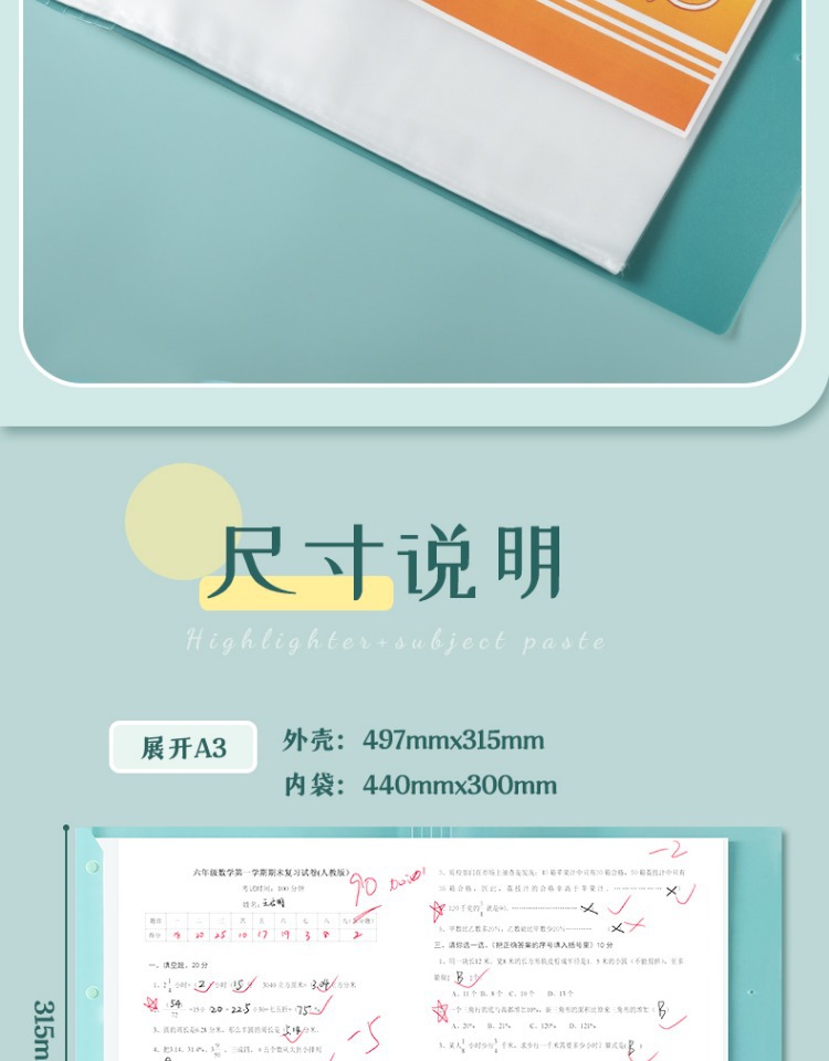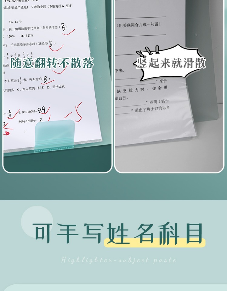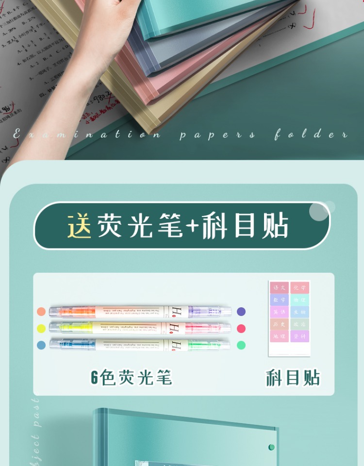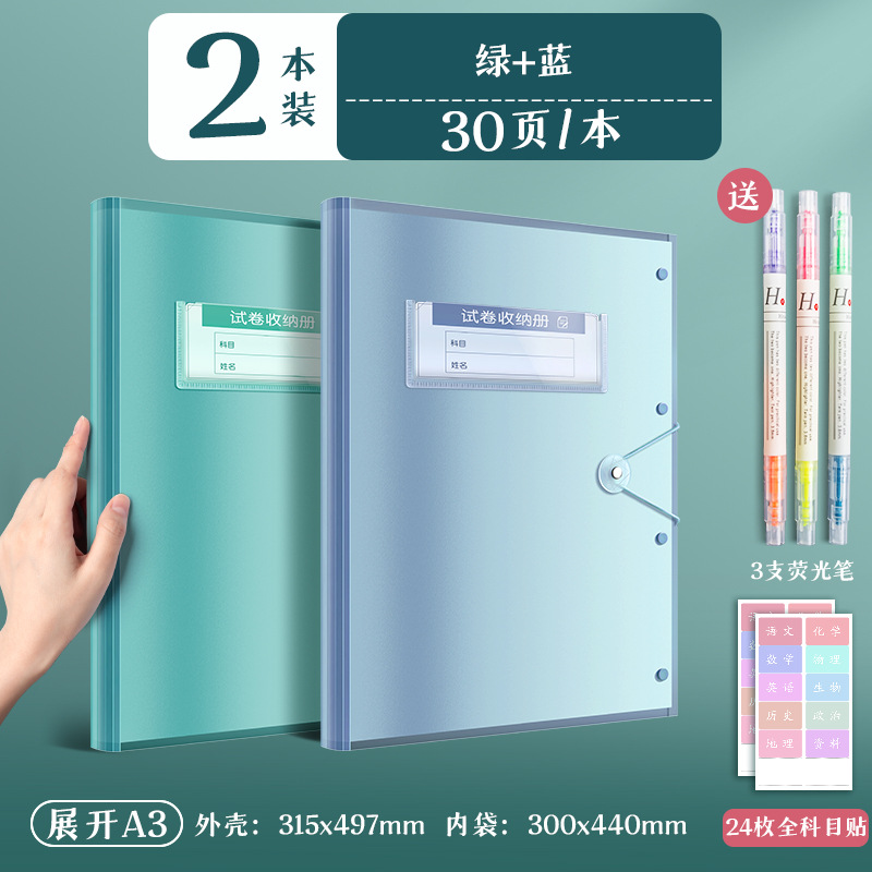 2 blue and green books/30 pages per book for free fluorescent pen + subject stickers