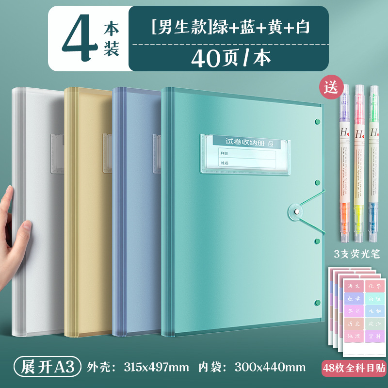 4 pieces/blue, white, green and yellow/40 pages per book for free fluorescent pen + subject stickers