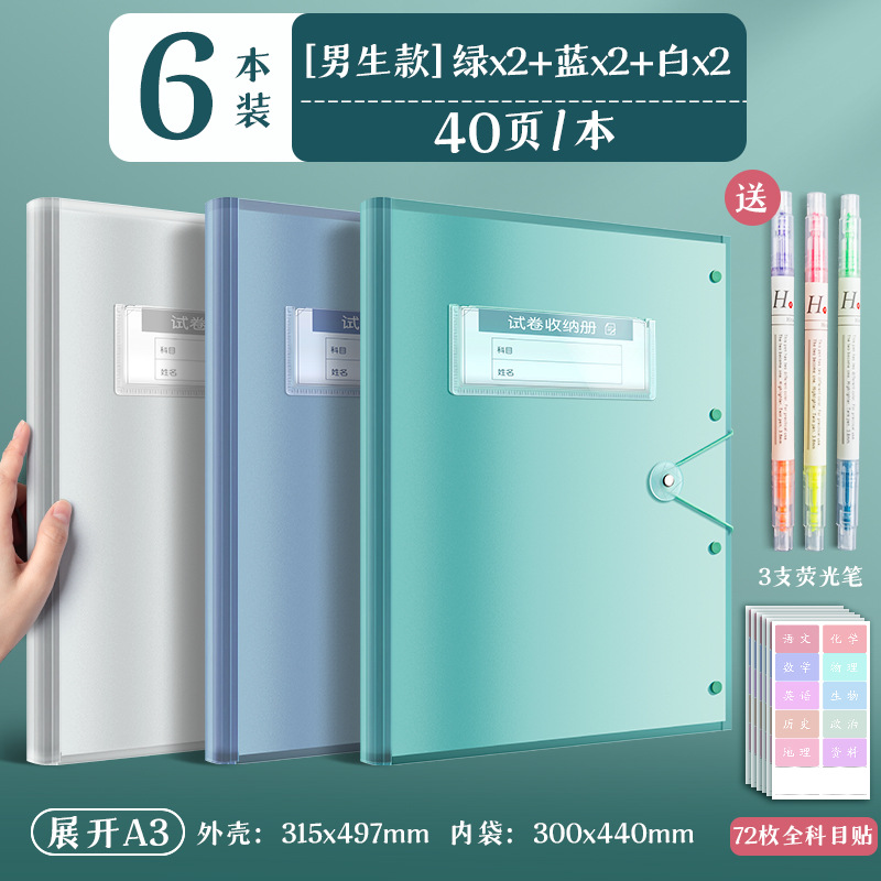 6 books/blue, green and white * 2/40 pages per book, fluorescent pen + subject stickers are given for free