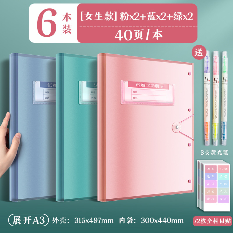 6 books/blue green pink * 2/40 pages per book + fluorescent pen + subject stickers for free
