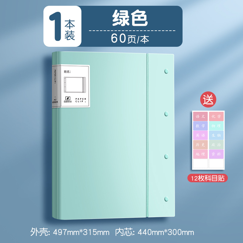 3 books/baby blue and green/60 pages per book, free fluorescent pen + subject stickers