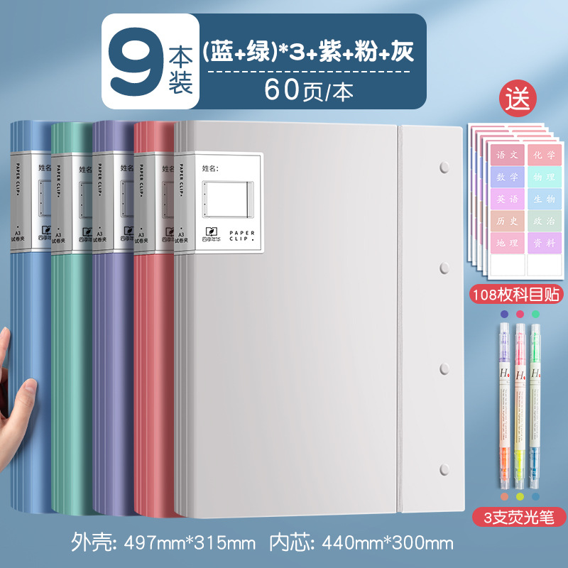 [9 pieces] blue 3 green 3 pink purple gray-60 pages/this one will send subject stickers +6 colors fluorescent pen