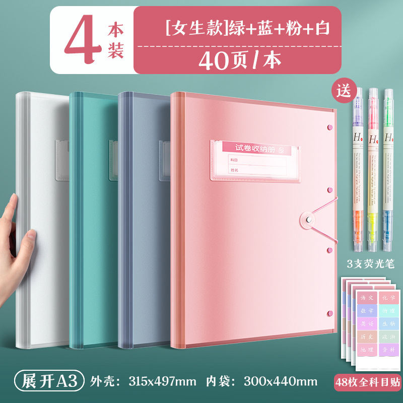 4 pieces/white powder, blue and green/40 pages per book for free fluorescent pen + subject stickers
