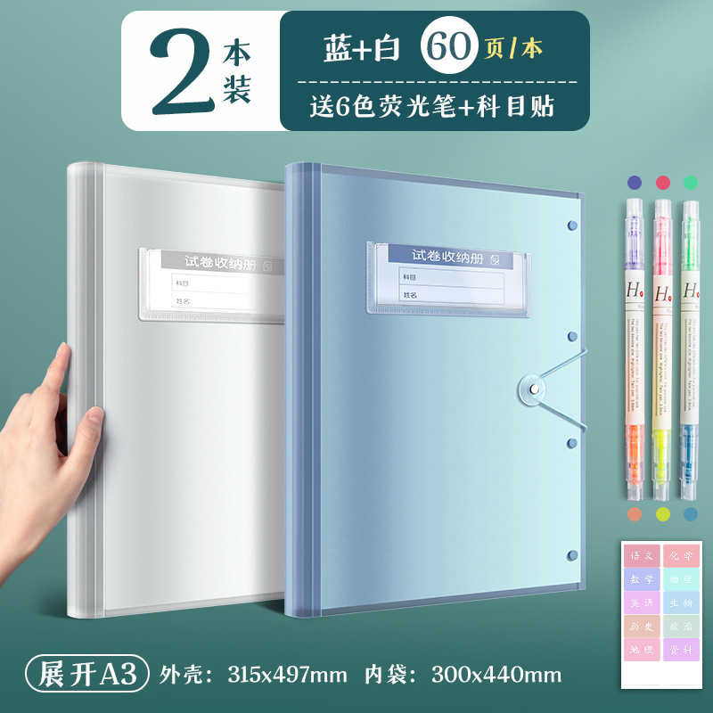 recommend/2 books/blue and white/60 pages per book + fluorescent pen + subject stickers