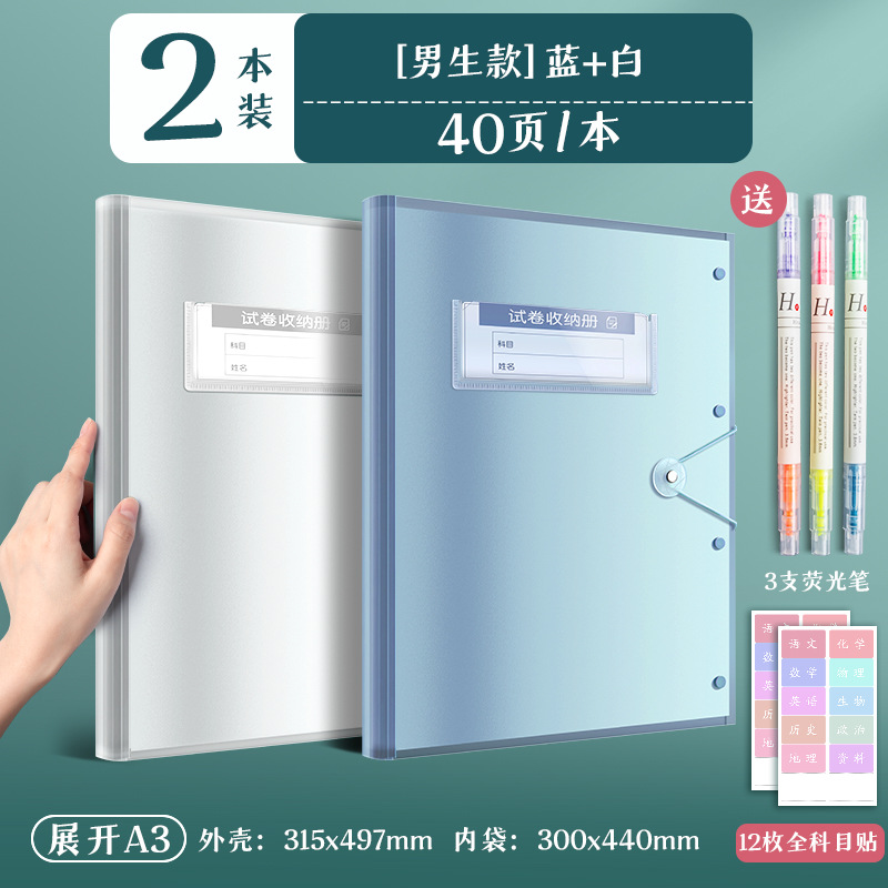 2 books/blue and white/40 pages per book for free fluorescent pen + subject stickers