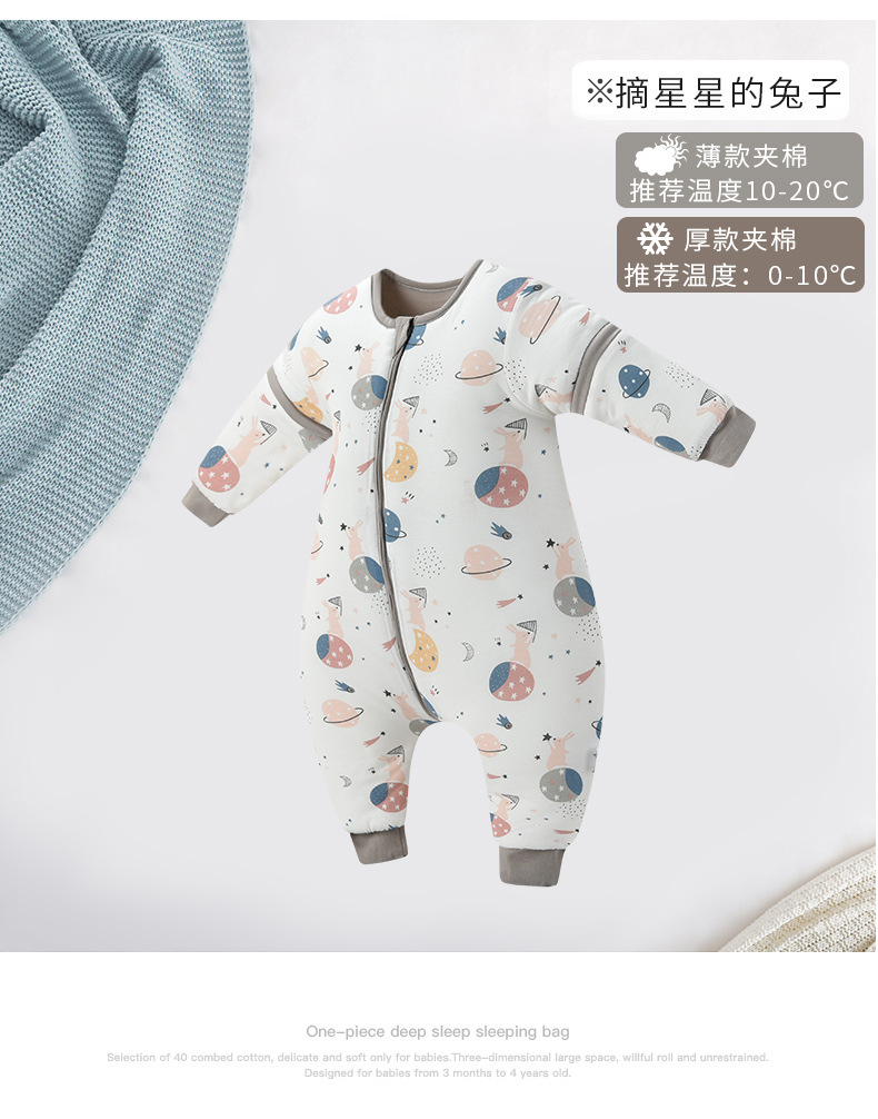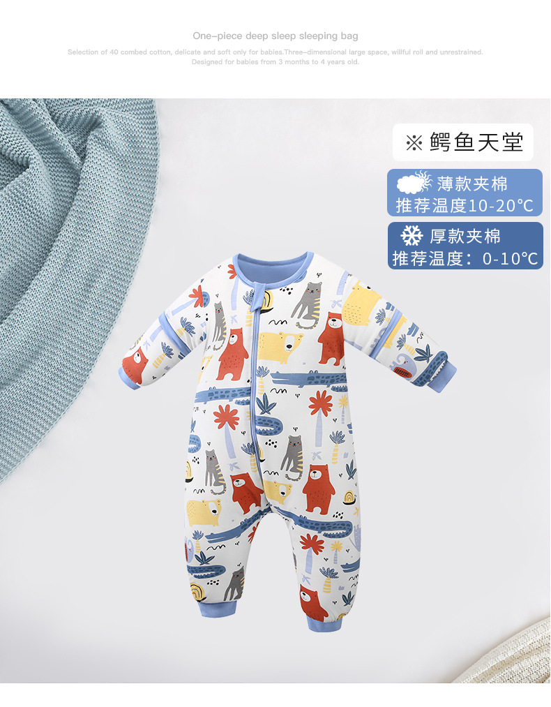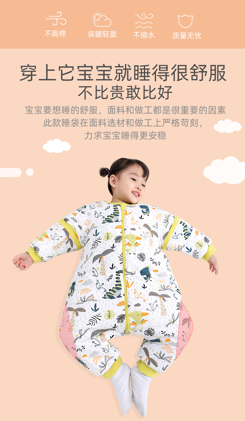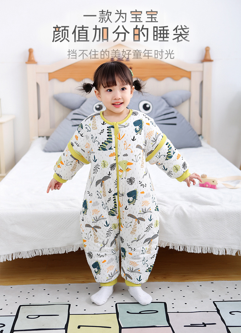 Baby Kickproof Quilt for Autumn and Winter, Thickened for 3-Year-Old Children, Cotton Blend for Warmth, Split Leg Sleeping Bag for Infants