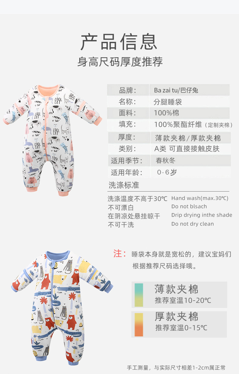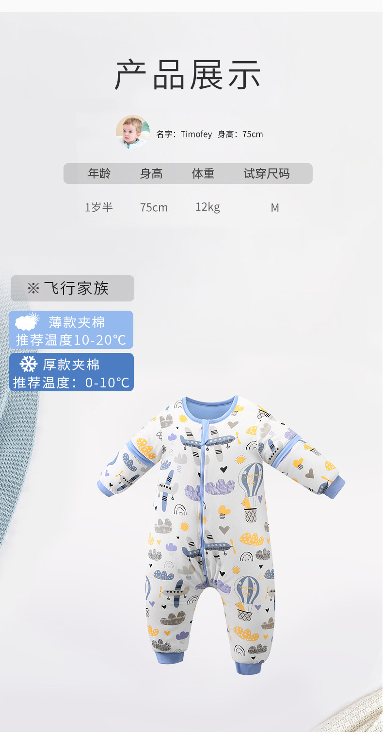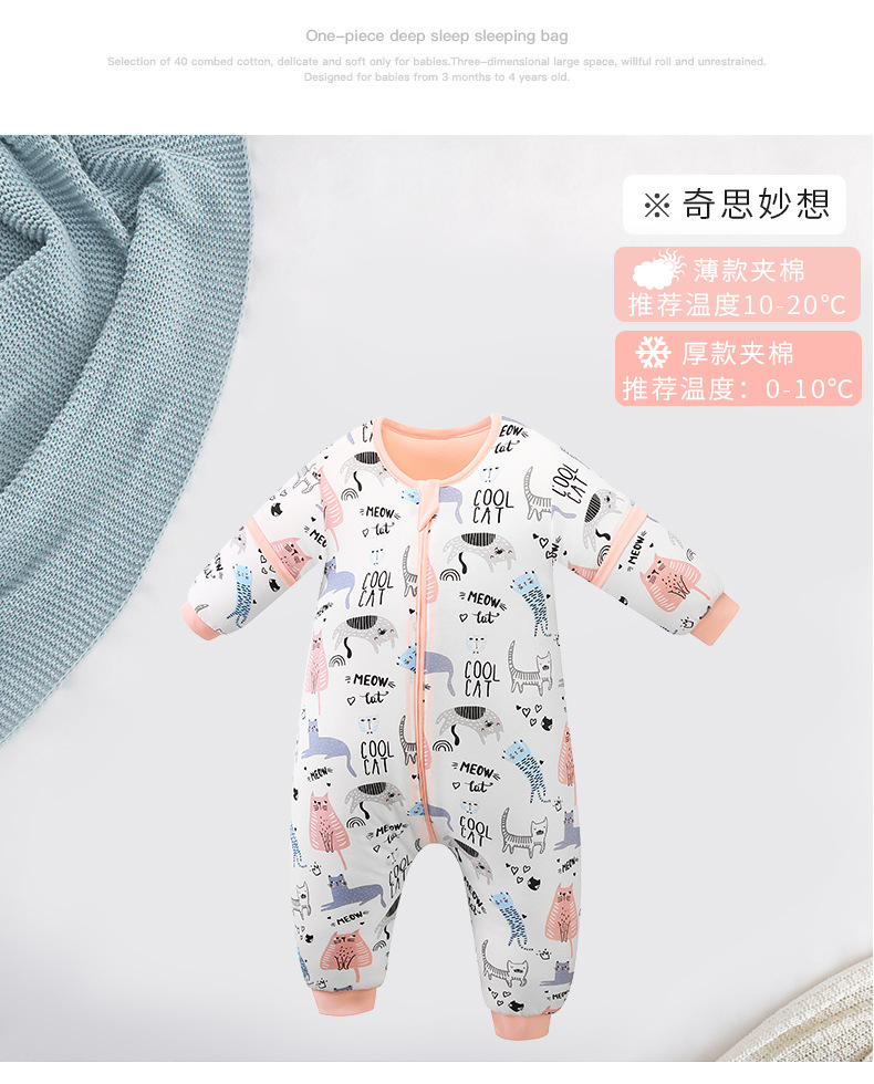 Baby Kickproof Quilt for Autumn and Winter, Thickened for 3-Year-Old Children, Cotton Blend for Warmth, Split Leg Sleeping Bag for Infants