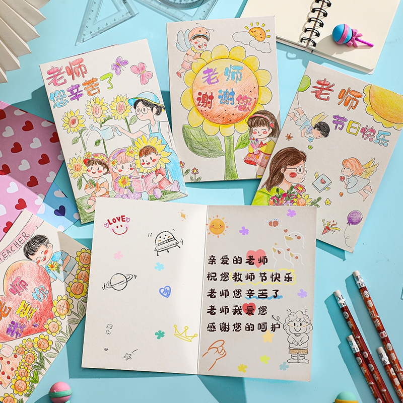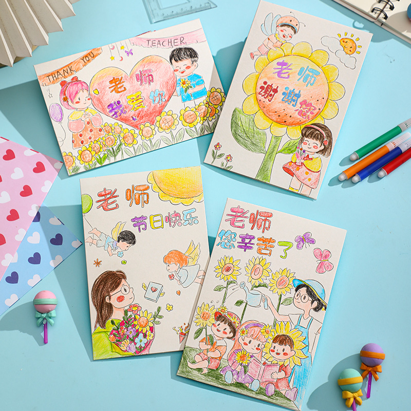 happy teacher's day-pencil painting (6 paintings +6 envelopes)