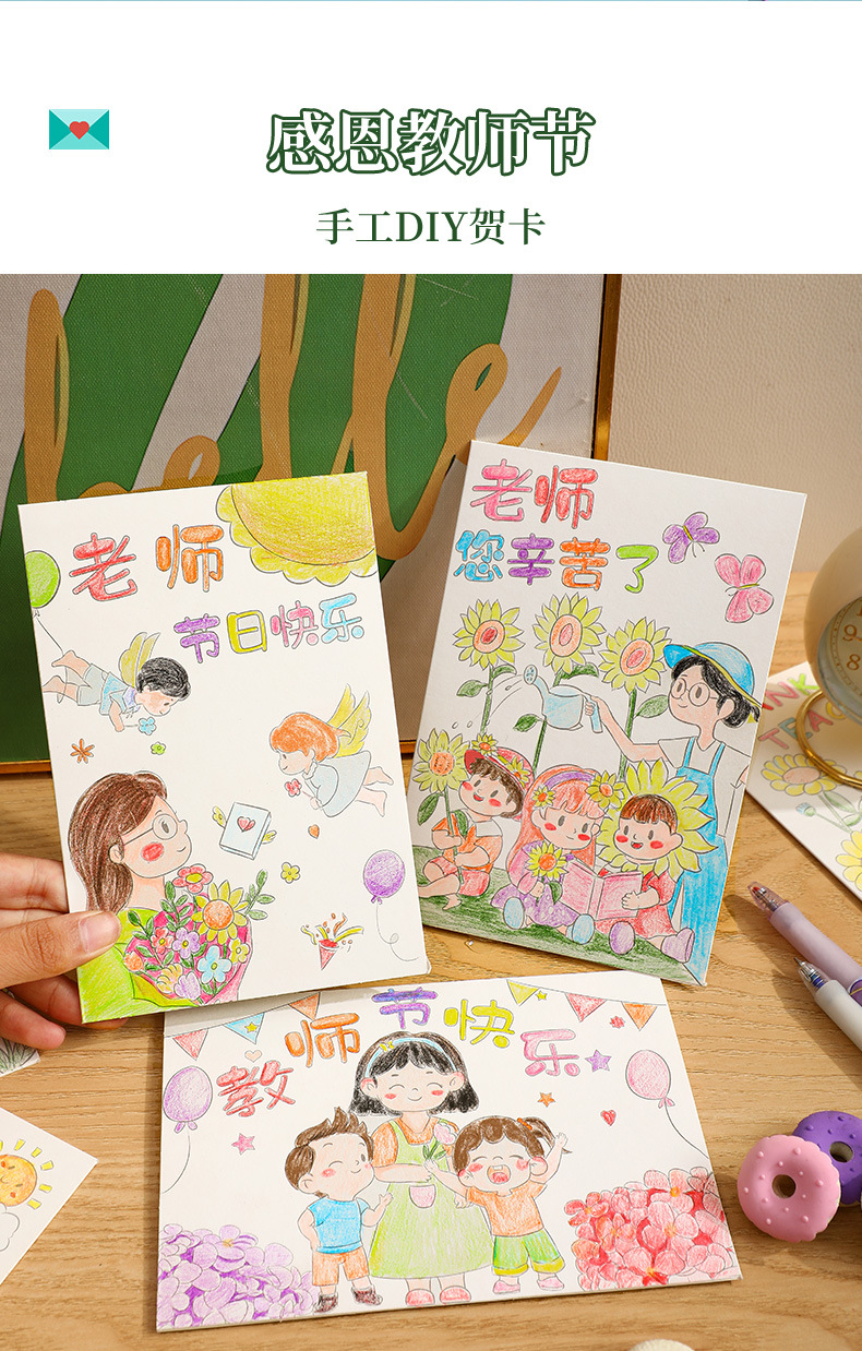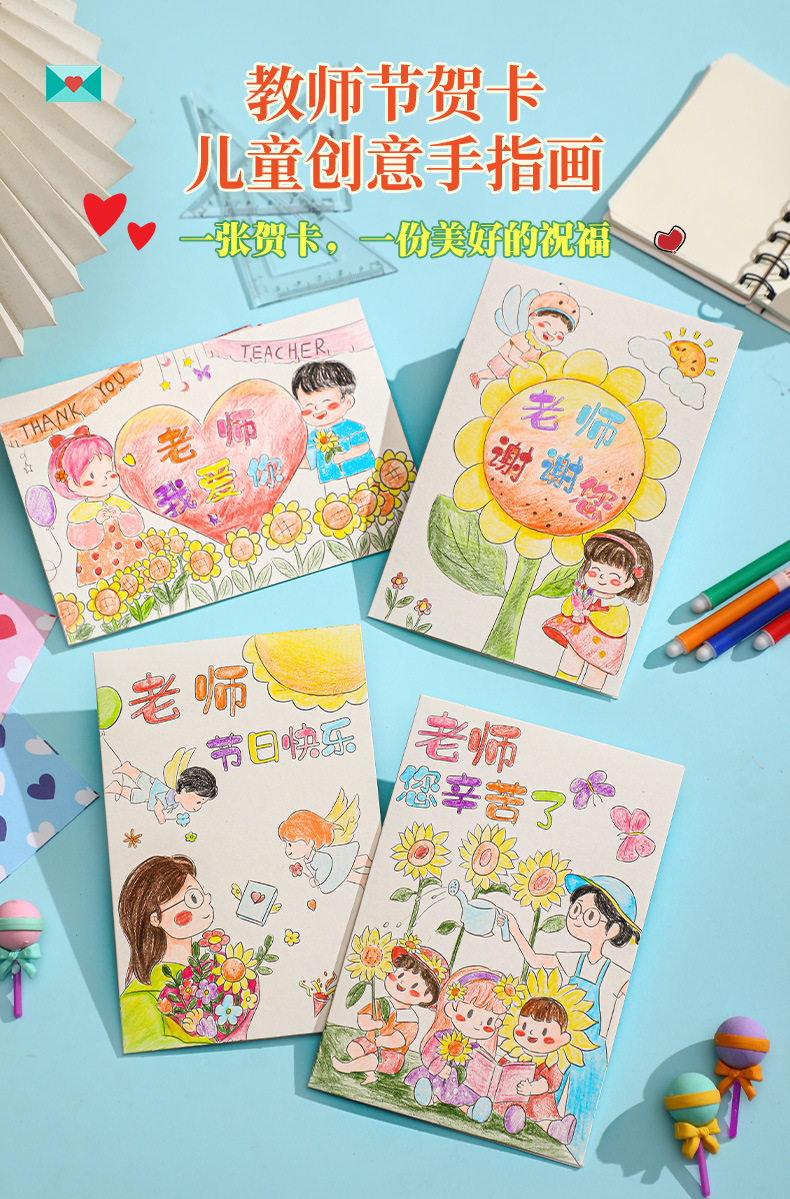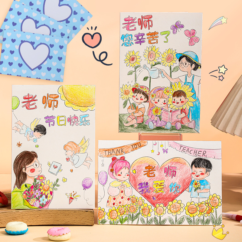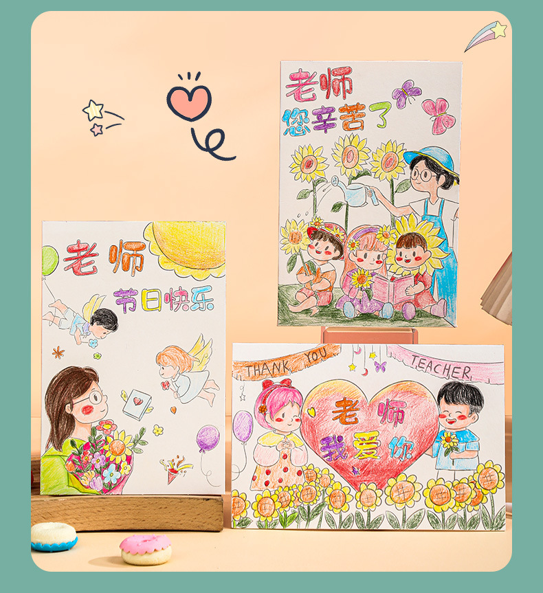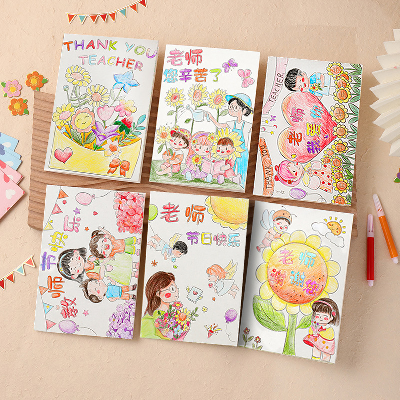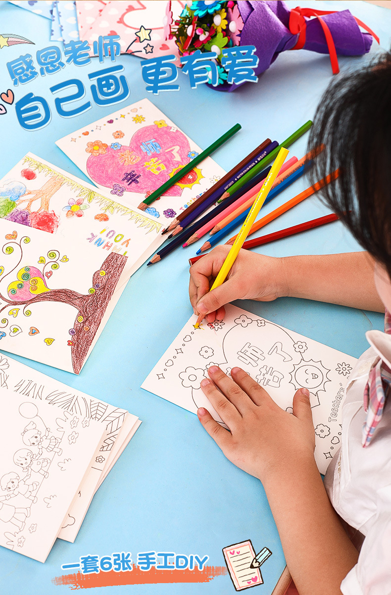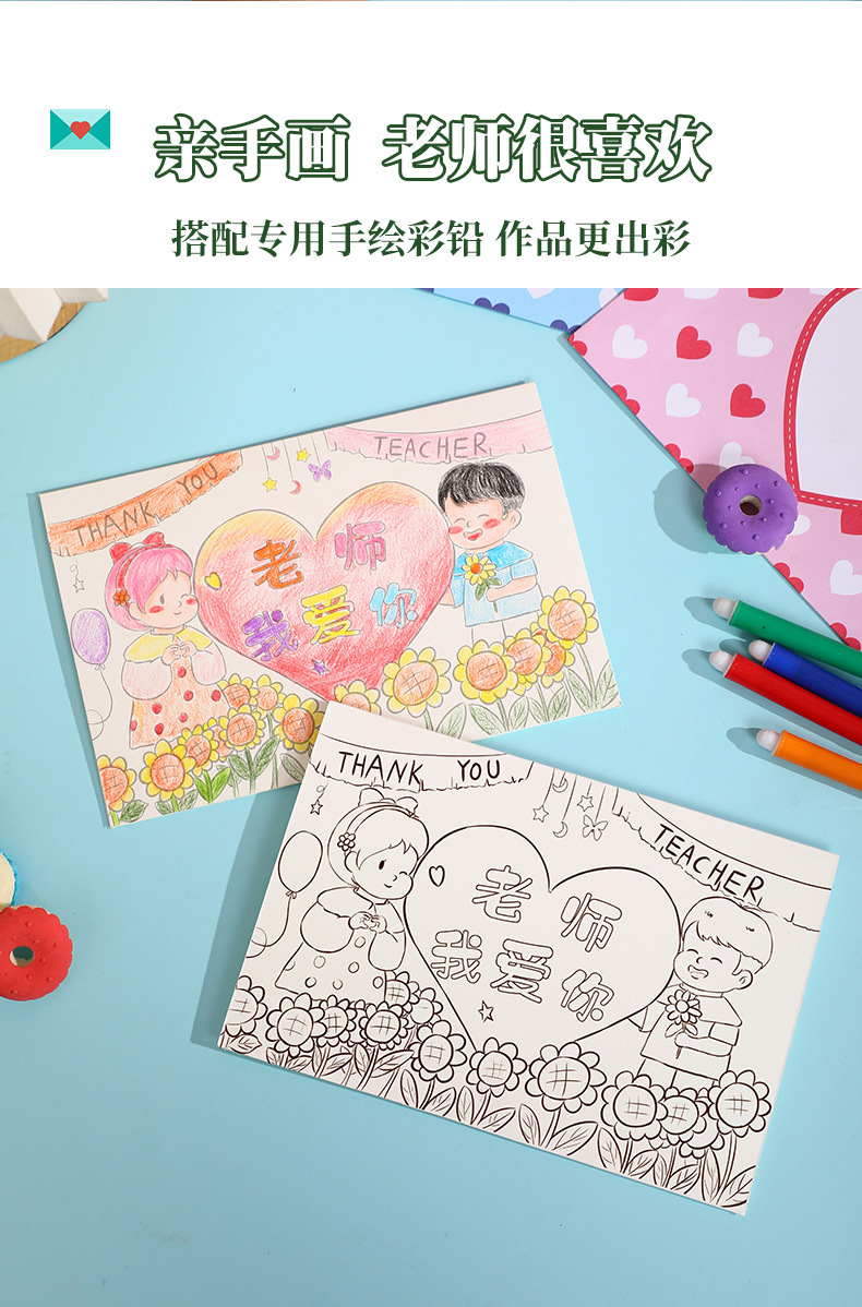 teacher's hard work-pencil painting (6 paintings +6 envelopes)