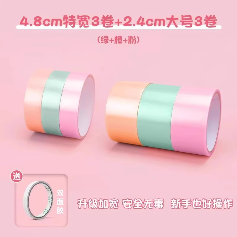 [thicken and lengthen] 4.8cm extra wide 3 rolls 2.4cm large 3 rolls (green orange pink) with double-sided adhesive tape