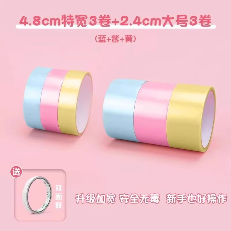 [thicken and lengthen] 4.8cm extra wide 3 rolls 2.4cm large 3 rolls (pink blue yellow) with double-sided adhesive tape