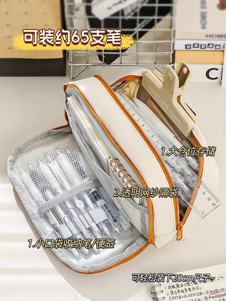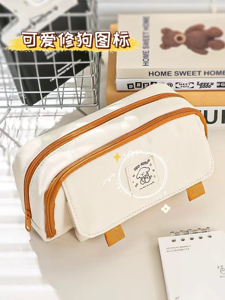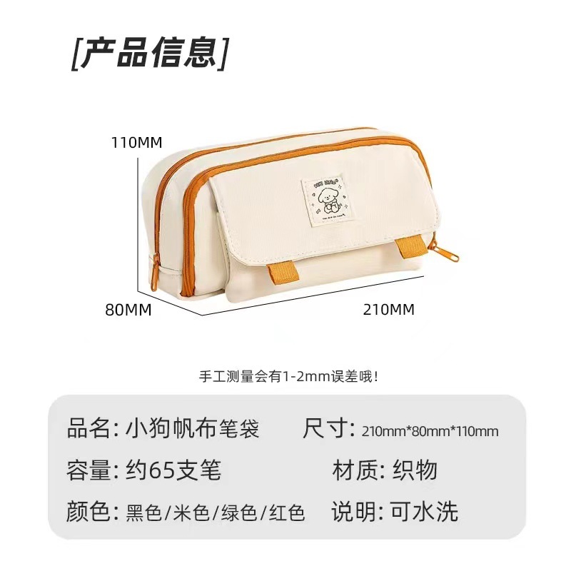 ★contrast color retractable pencil case-khaki