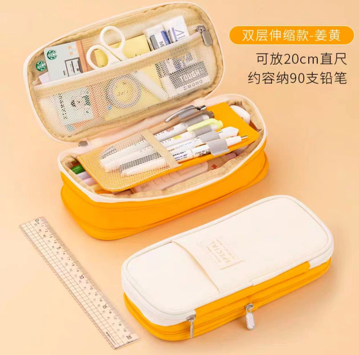 ★contrast color retractable pencil case-turmeric