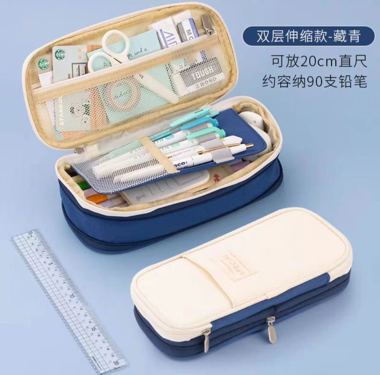 telescopic pencil case-navy blue