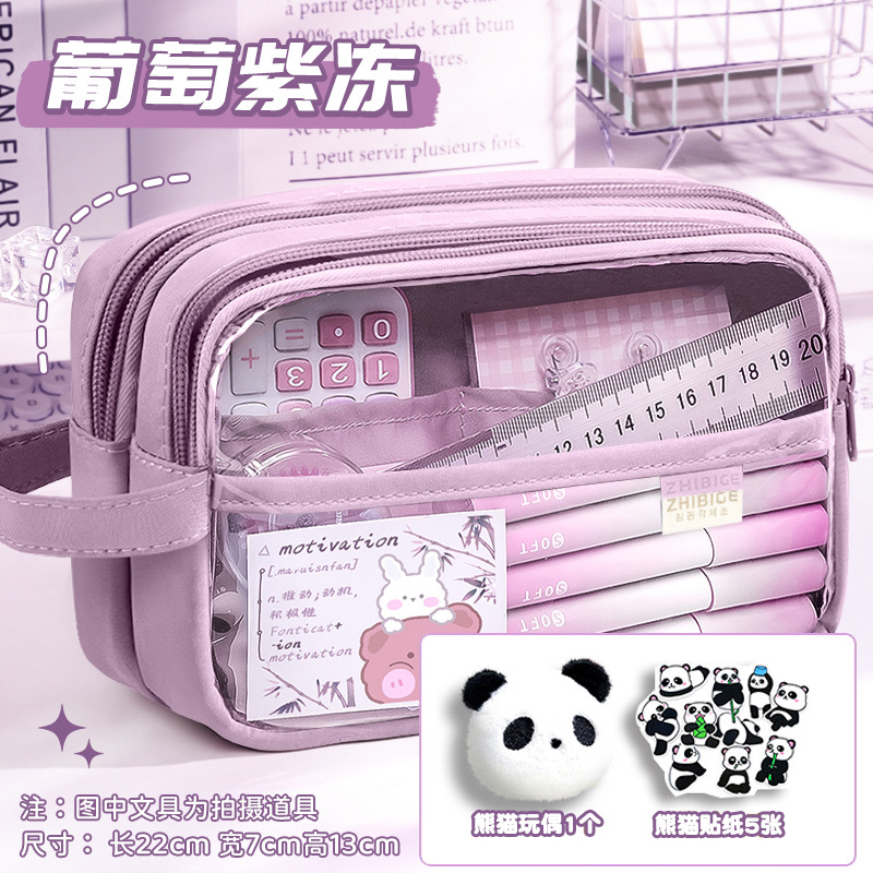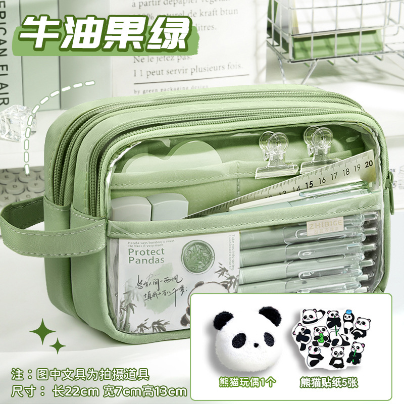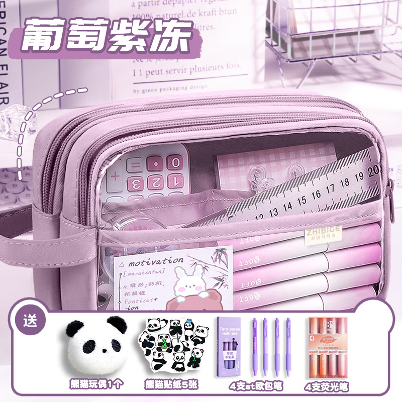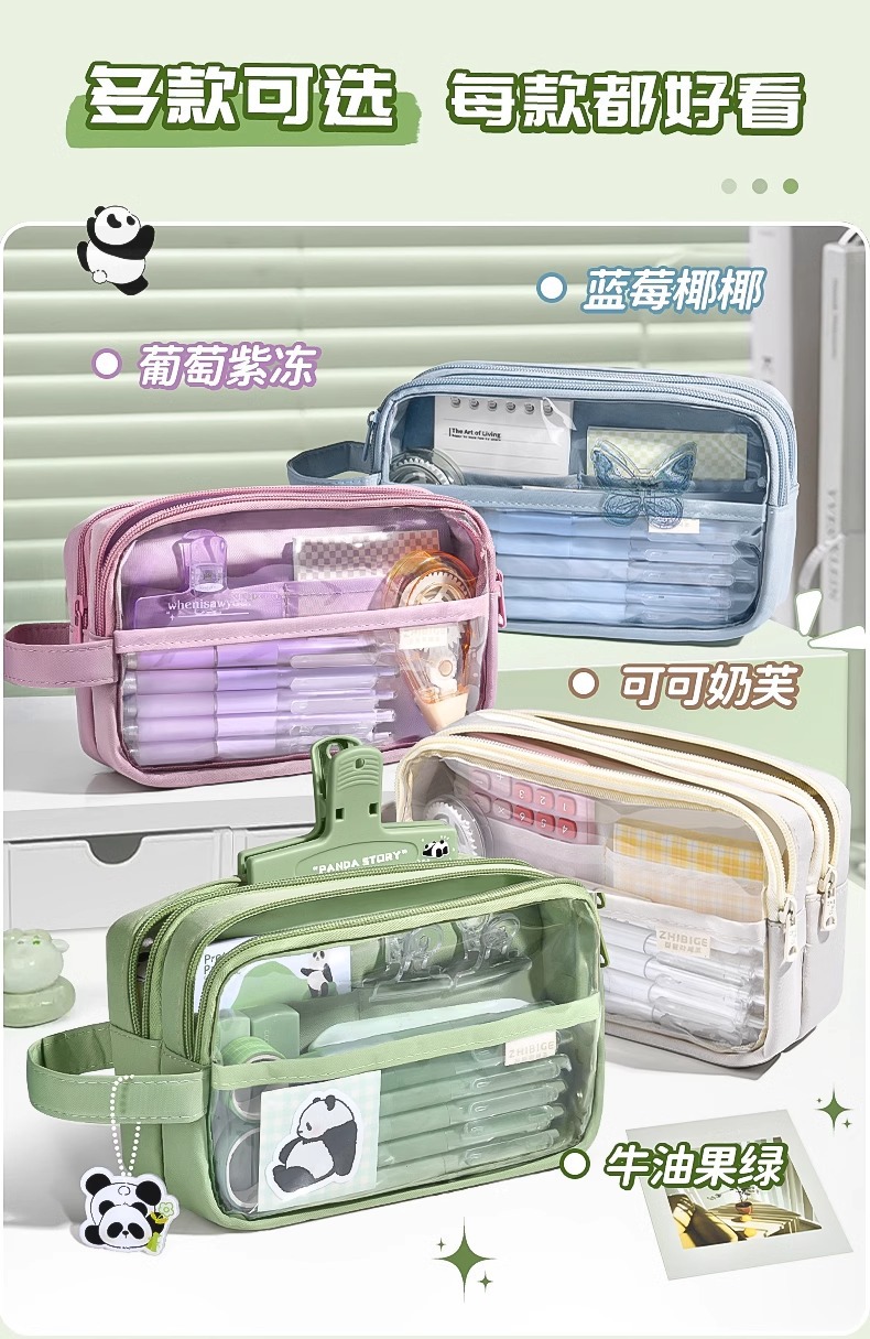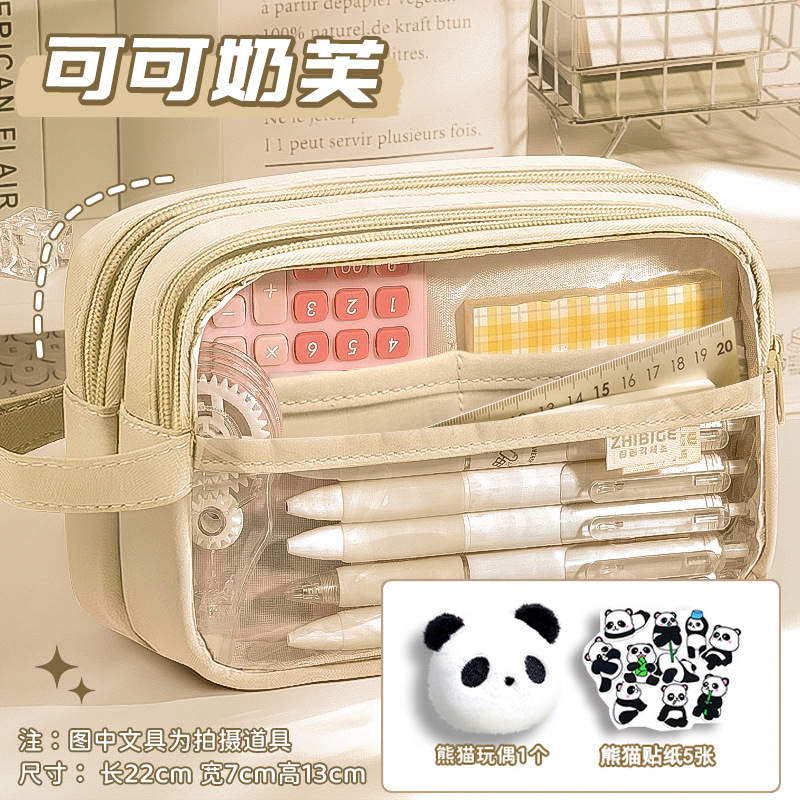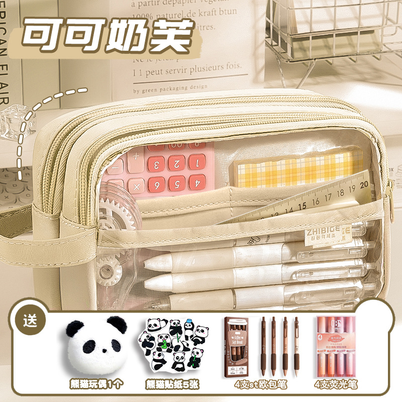 [panda suit] beige with stickers + brooch + european bag pen + fluorescent pen