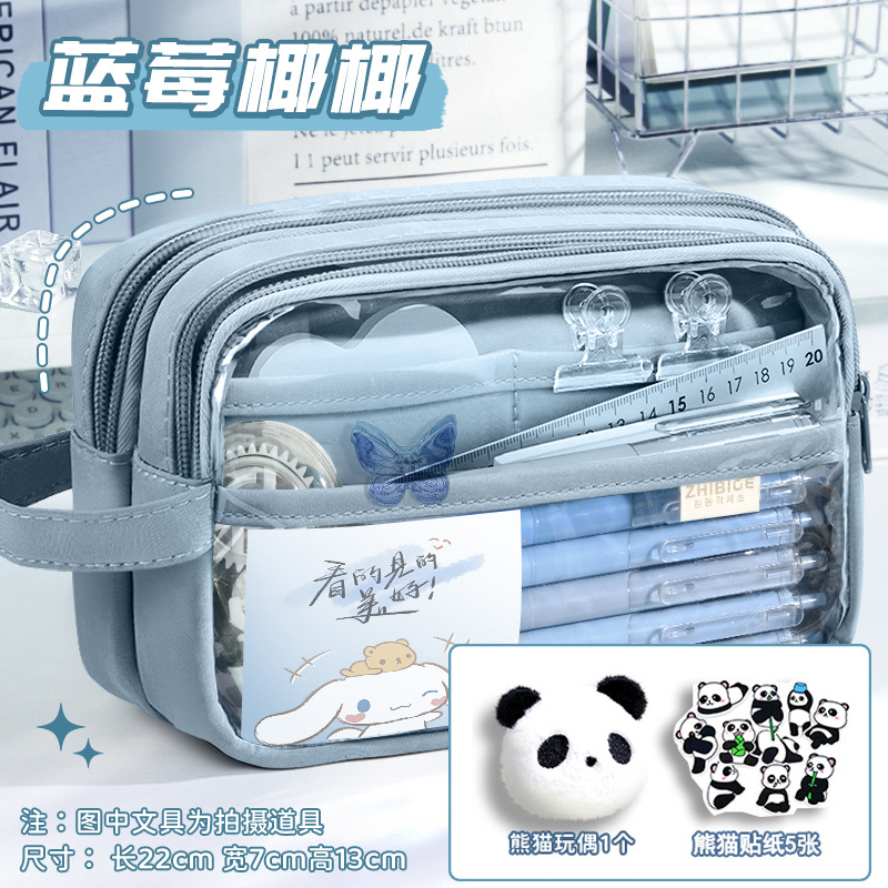 [panda suit] blue with stickers + brooch + european bag pen + fluorescent pen
