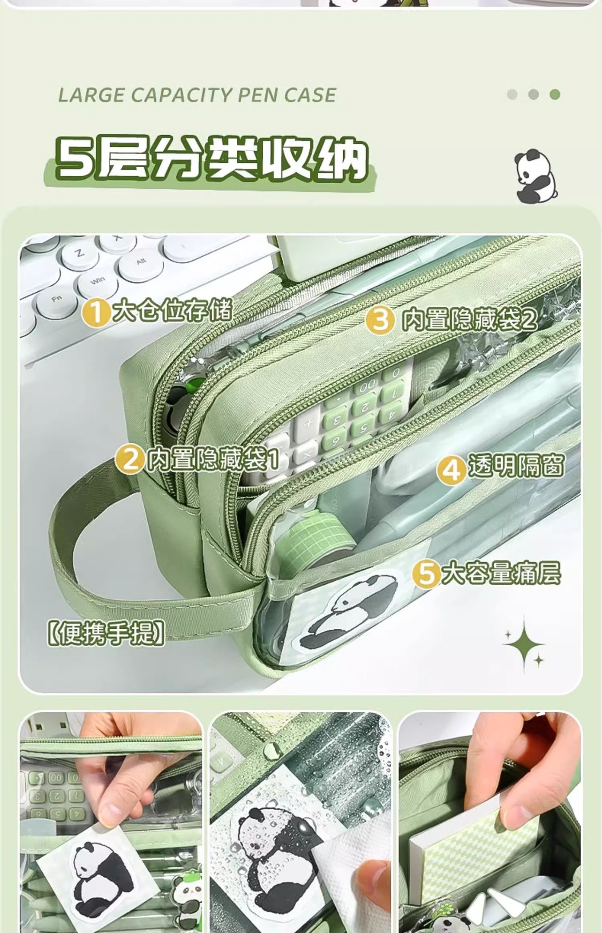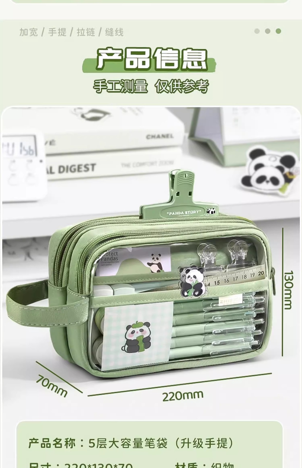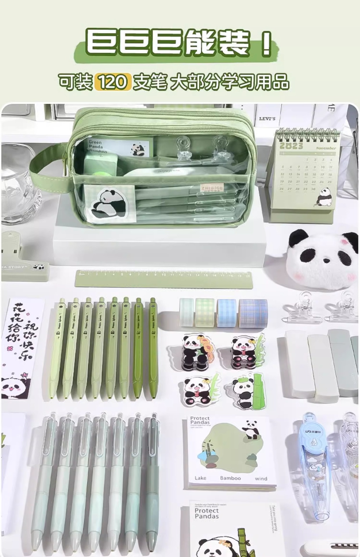 [panda suit] green stickers + brooch + european bag pen + fluorescent pen