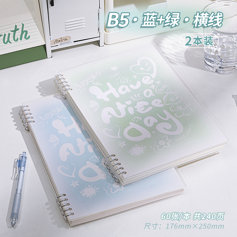 b5 · blue & green · horizontal line · 2 books · 240 pages