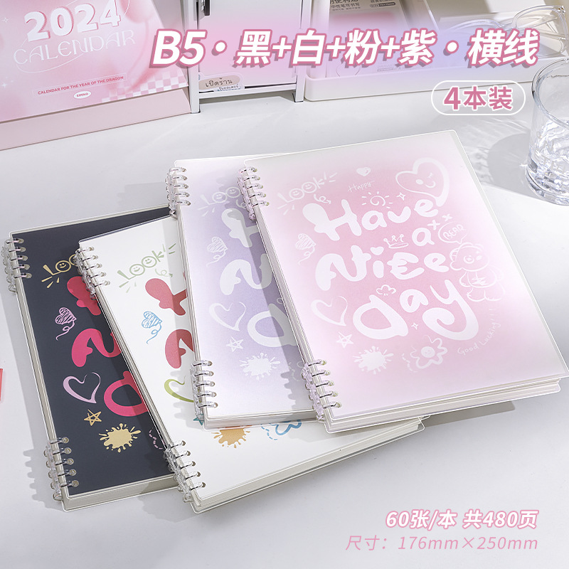 b5 · black + white + pink purple · horizontal line · 4 books · 480 pages