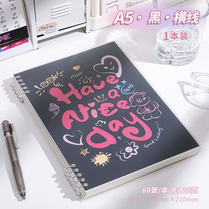 a5 · black · horizontal line · 1 book · 120 pages