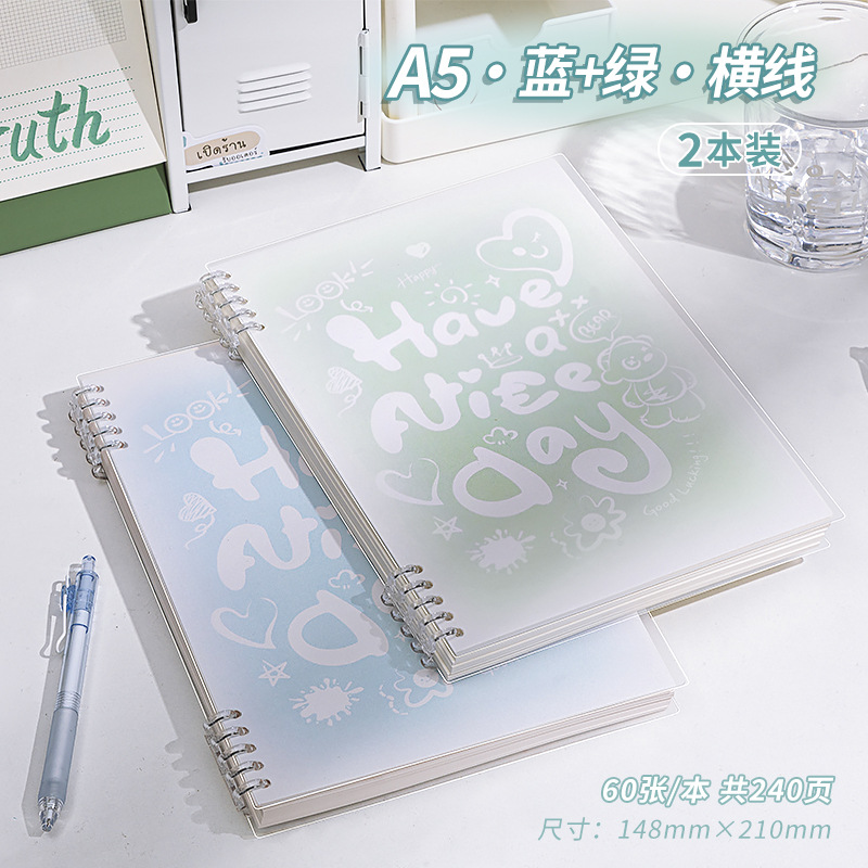 a5 · blue & green · horizontal line · 2 books · 240 pages