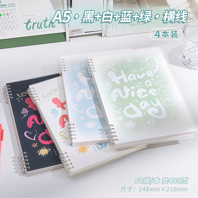 a5 · black + white + pink purple · horizontal line · 4 books · 480 pages