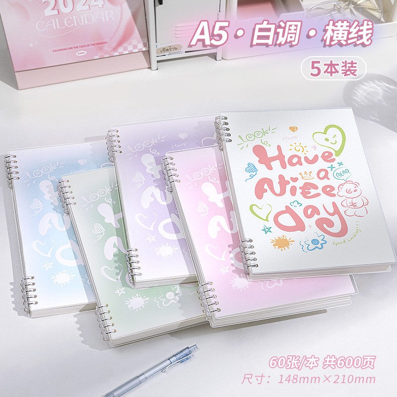 a5 · white tone · horizontal line · 5 books · 600 pages