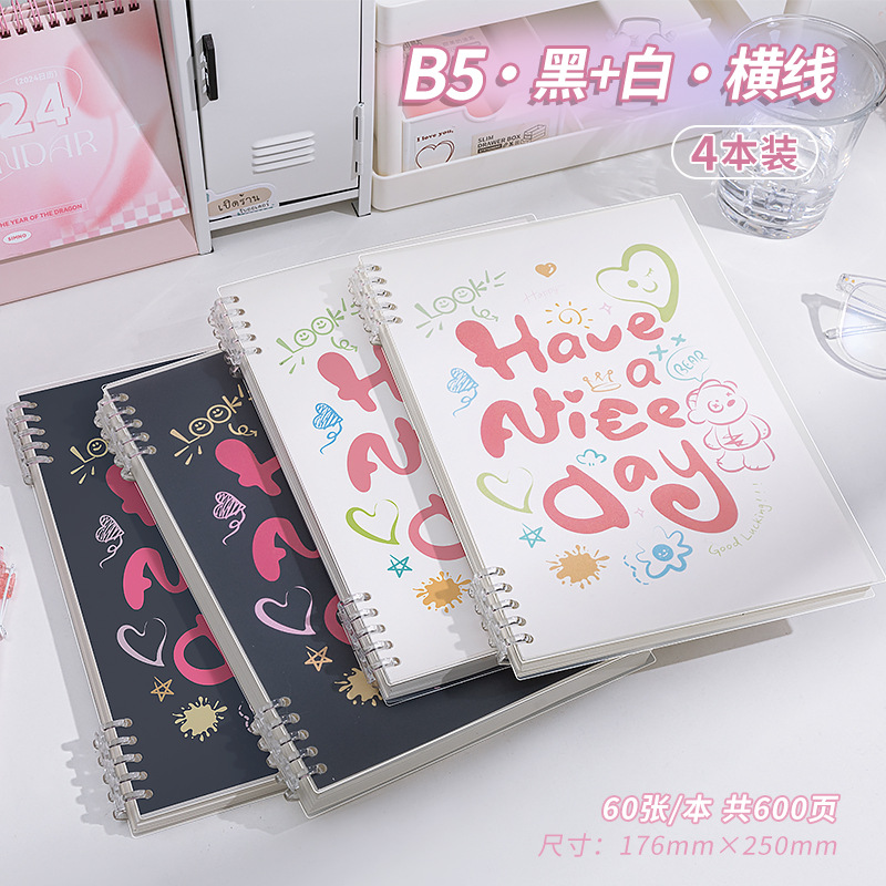 b5 · black tone · grid · 5 copies · 600 pages