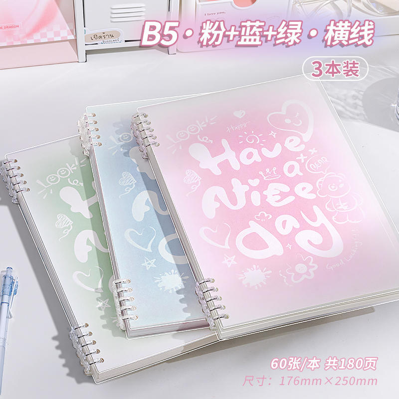 b5 · pink + blue & green · horizontal line · 3 books · 360 pages