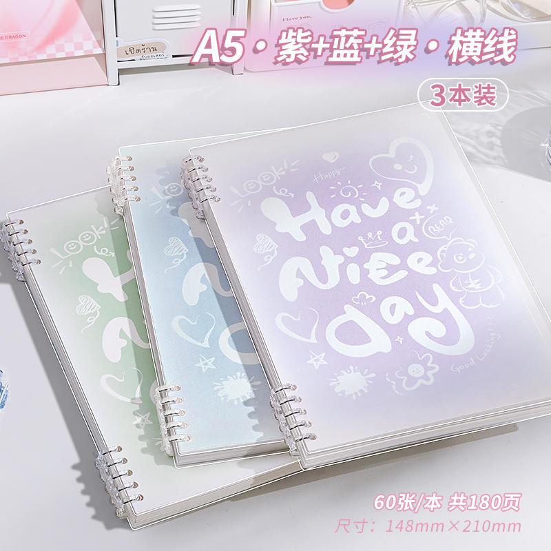 a5 · pink + blue & green · horizontal line · 3 books · 360 pages