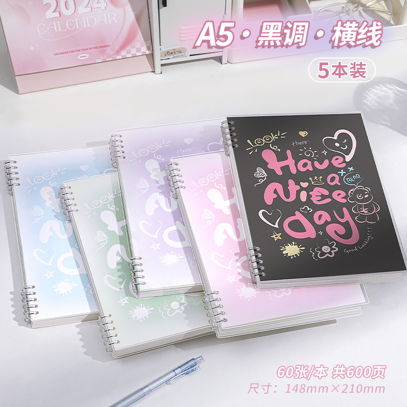 a5 · black tone · horizontal line · 5 books · 600 pages